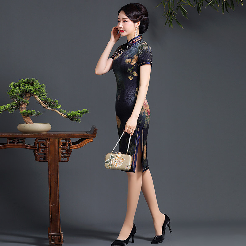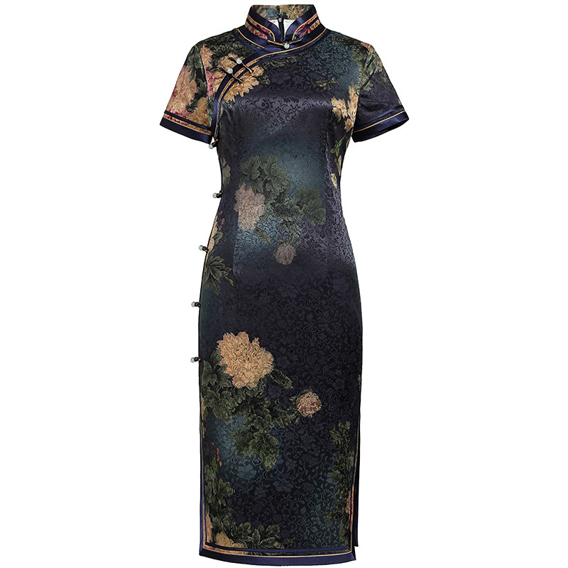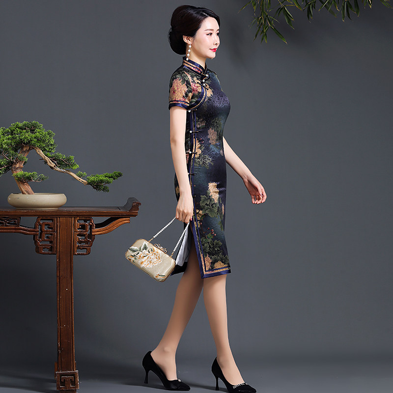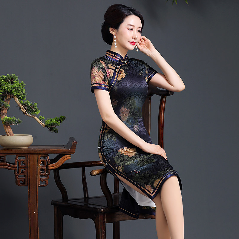 High-end Chinese-style national style fragrant cloud gauze cheongsam summer new fashion temperament female broad lady noble silk dress