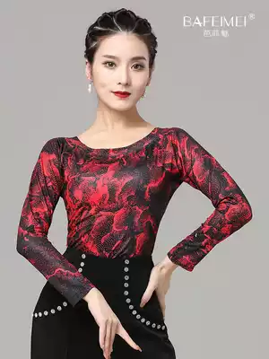 Baffi Charm Modern Dance Top Women's New Latin Dance Waltz National Standard Dance Big Round Neck Long Sleeve Dance Clothes Practice