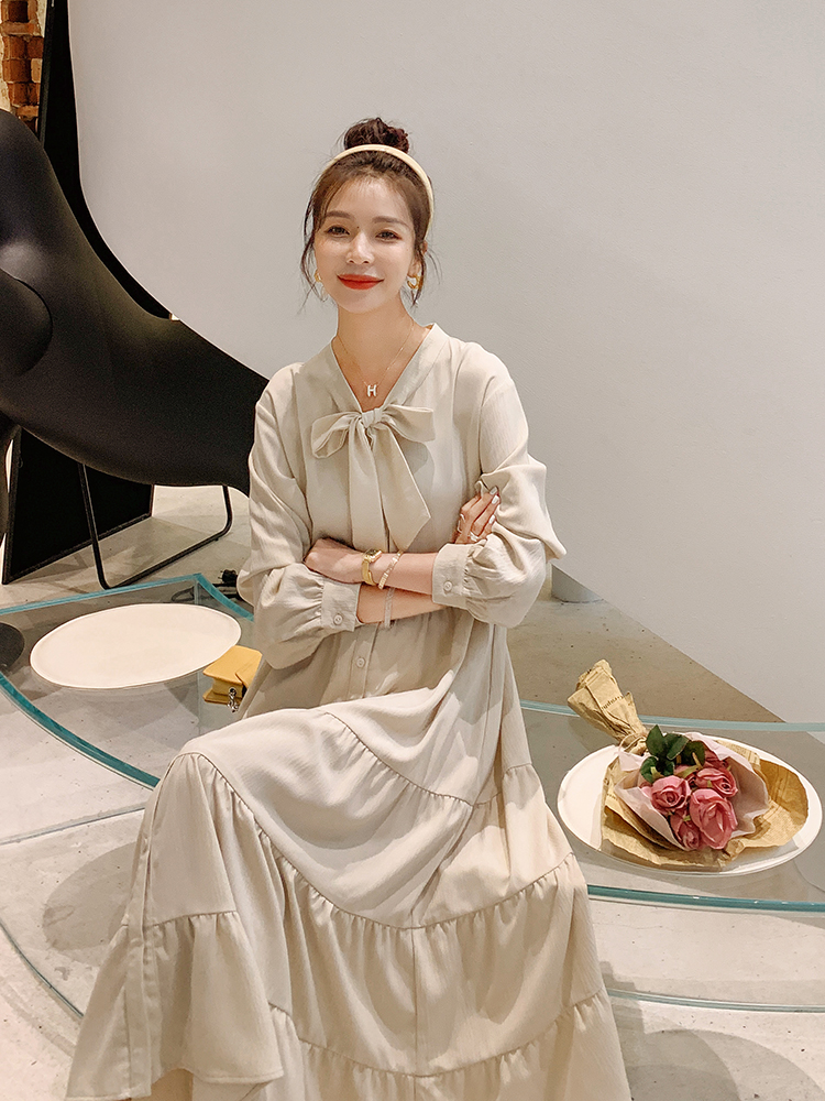 Lecea Alice Light Luxury French Ocean 2022 Spring New Temperance Fold Butterfly Bow Cake Dress