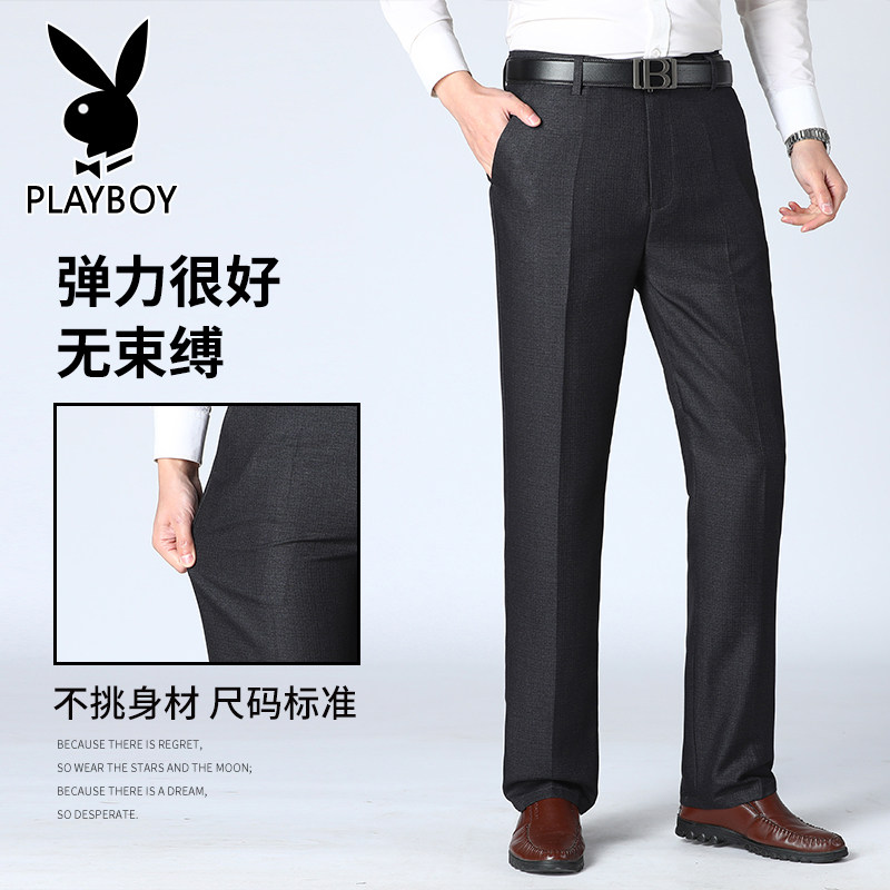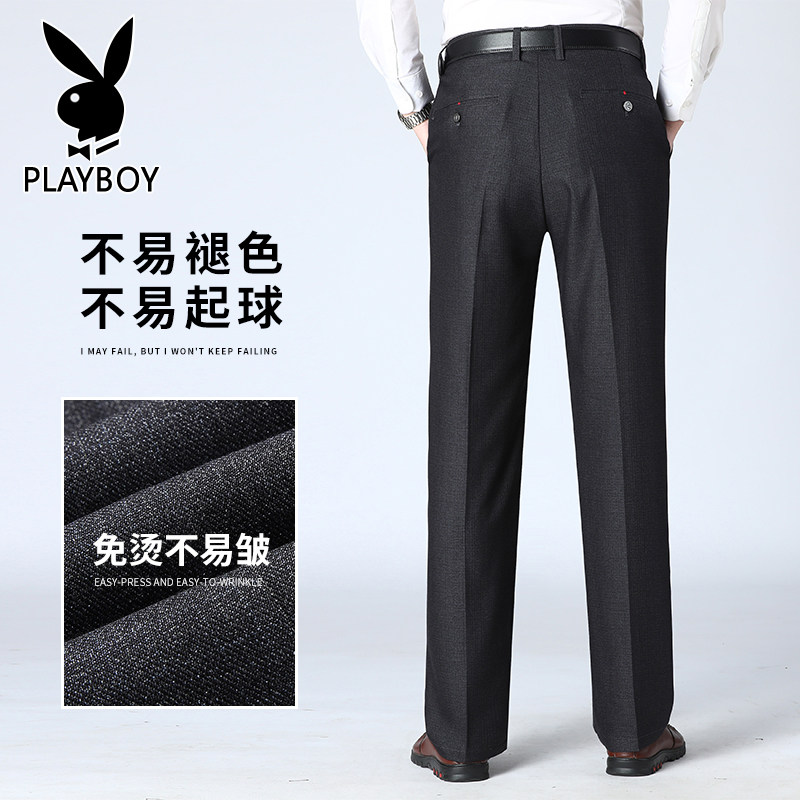 Flowers Playboy Middle Aged Casual Pants Male Summer Thin business Dad long pants loose straight drum Men's Western pants