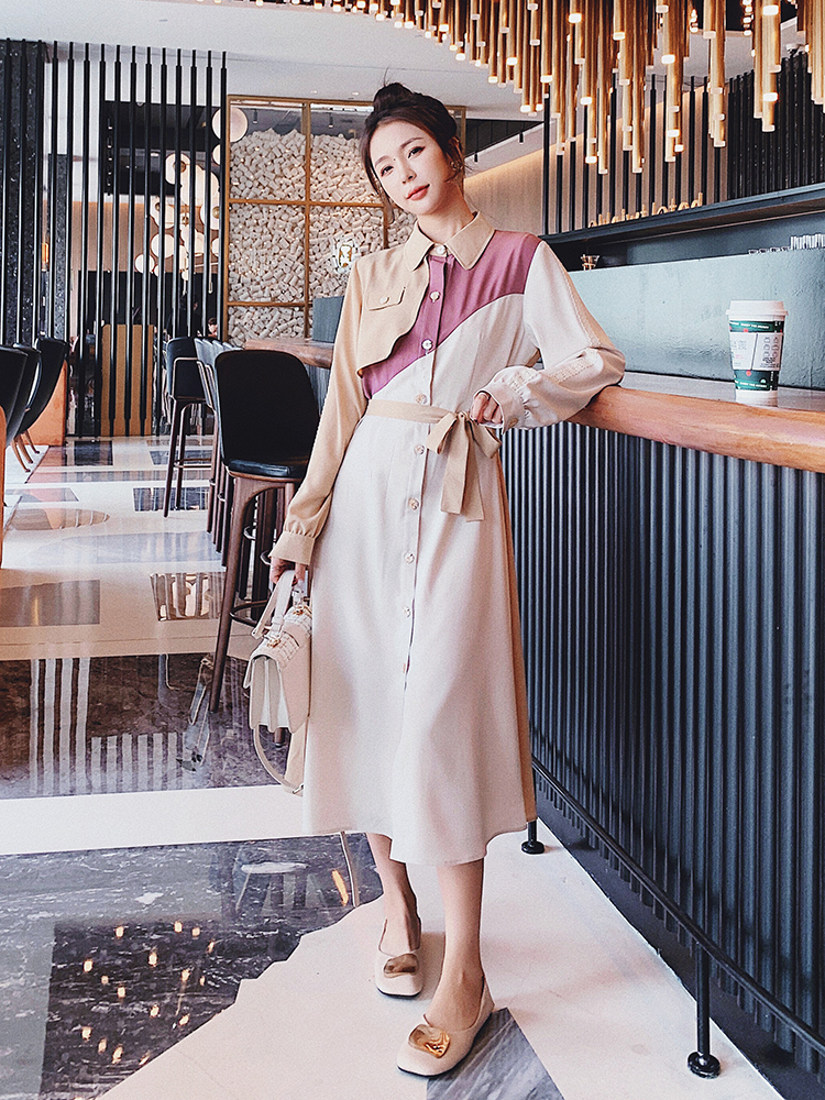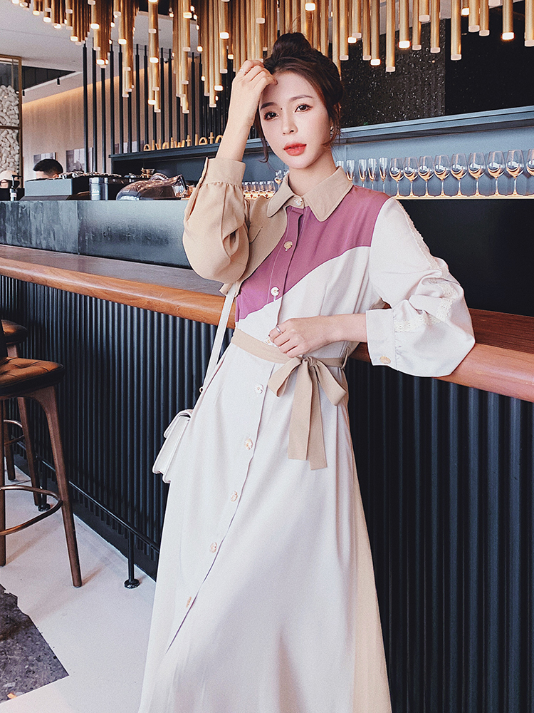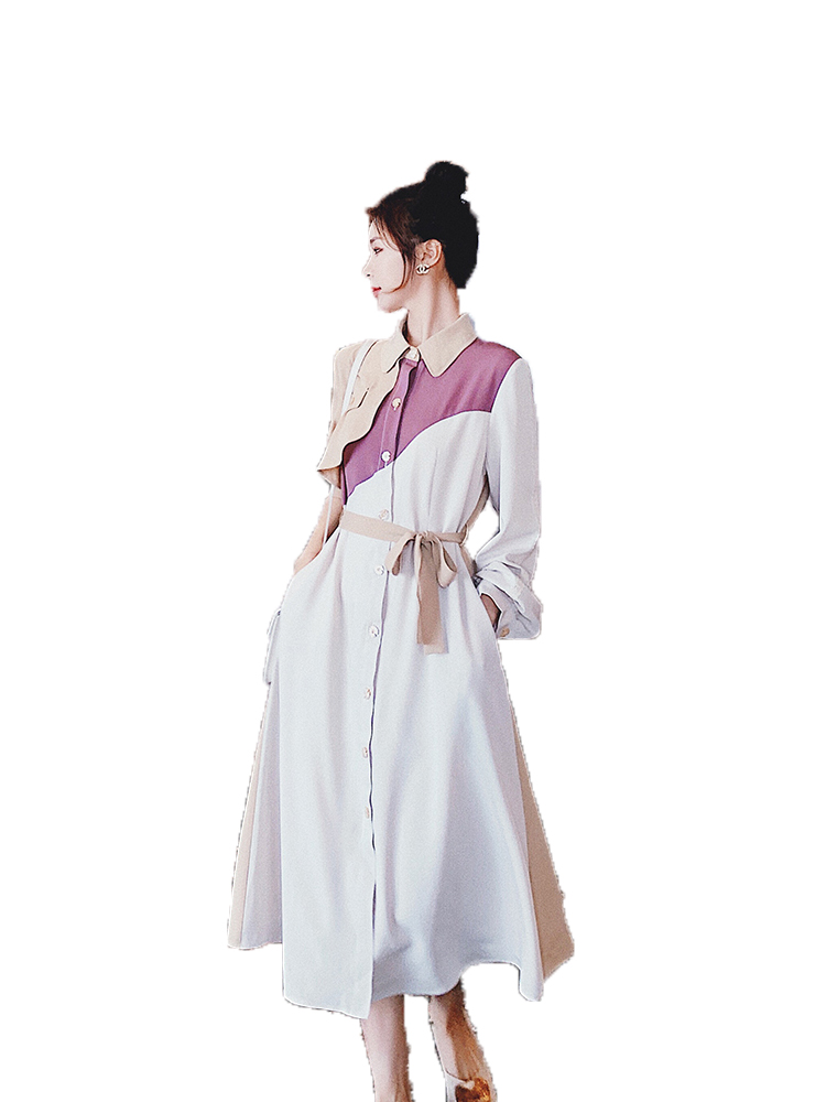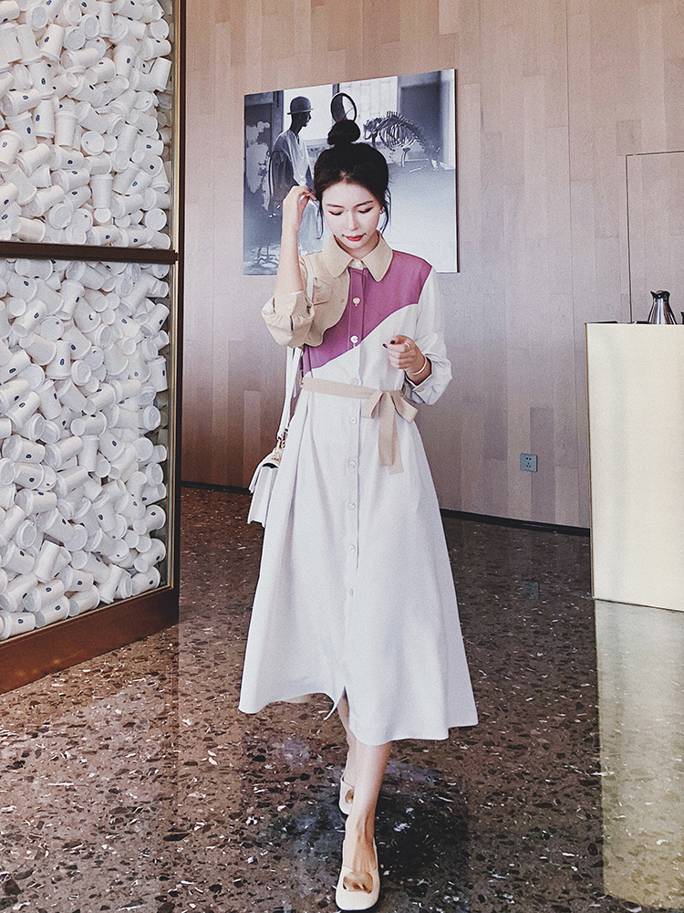 Lecea Alice shirt skirt women's design sense niche 2022 autumn new contrast color stitching French dress