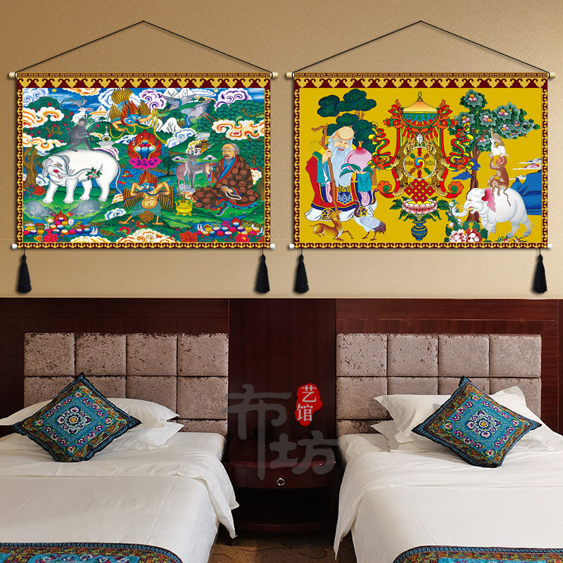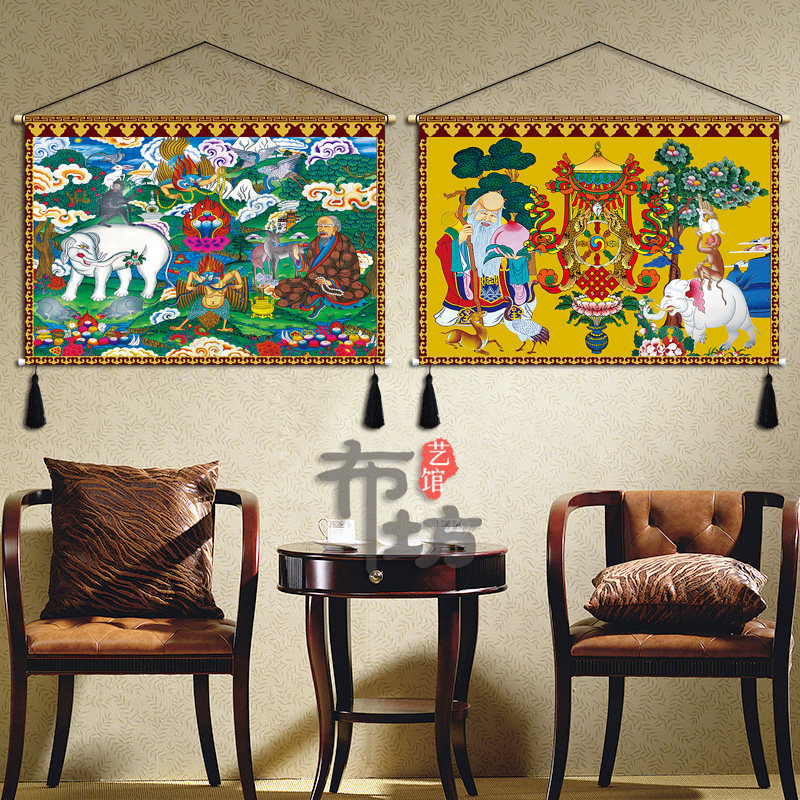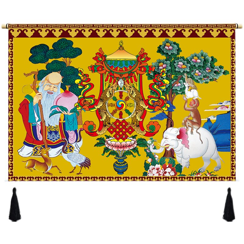 Tibetan cloth art hanging painting Auspicious Four Jui Eight Precious Six Life Buddha Hung Cloth Background Wall Xuanguan Zhongtang Buddhist Hall Decoration Tapestries