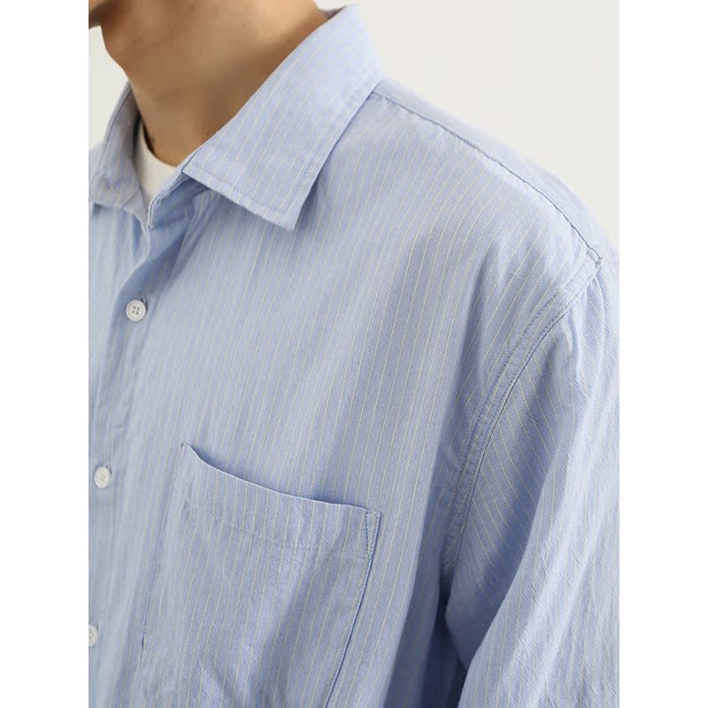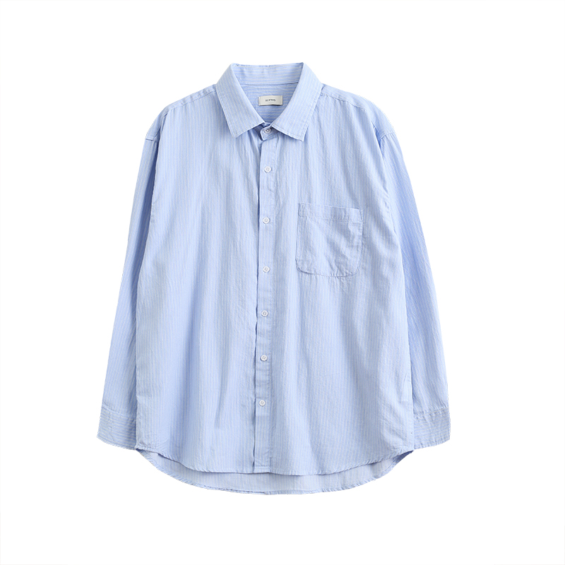MOREFANS Korean version of light luxury men's striped cotton light blue summer long-sleeved shirt loose casual shirt