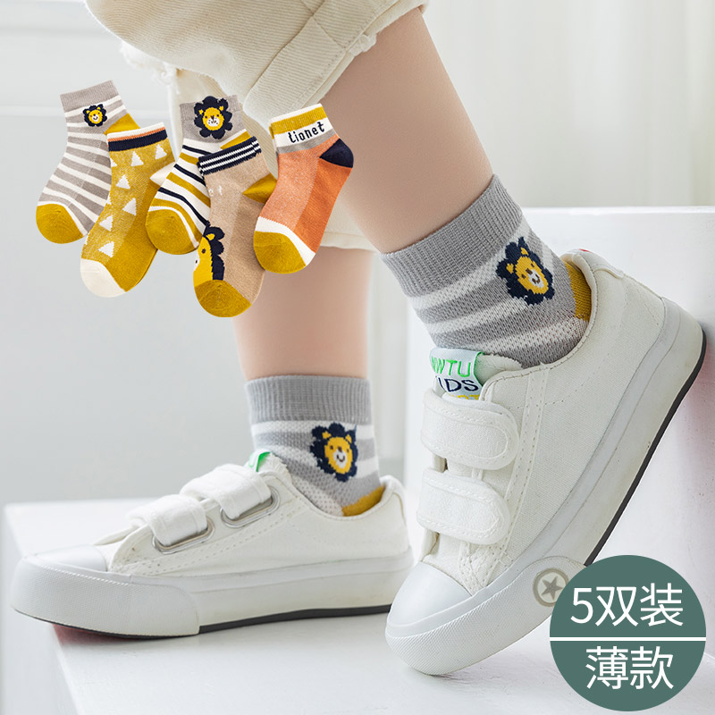 Baby Kids Socks Summer Thin Boy Girl Mesh Breathable Cotton Spring and Autumn Cartoon Lion Socks