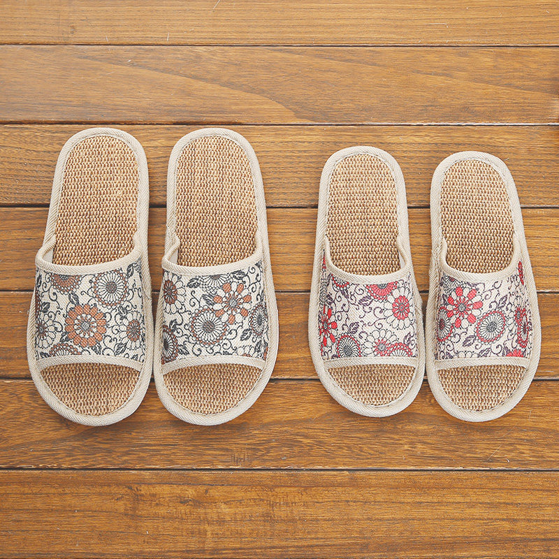 Home home indoor summer men and women cotton and linen couple linen non-slip slippers soft thick bottom wood floor cool linen blowing