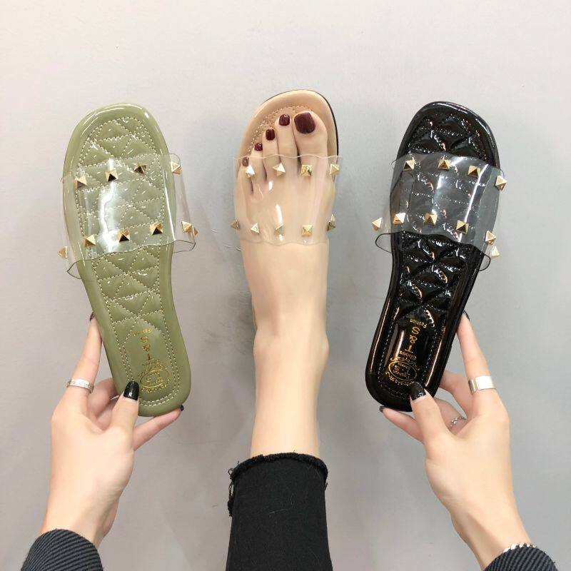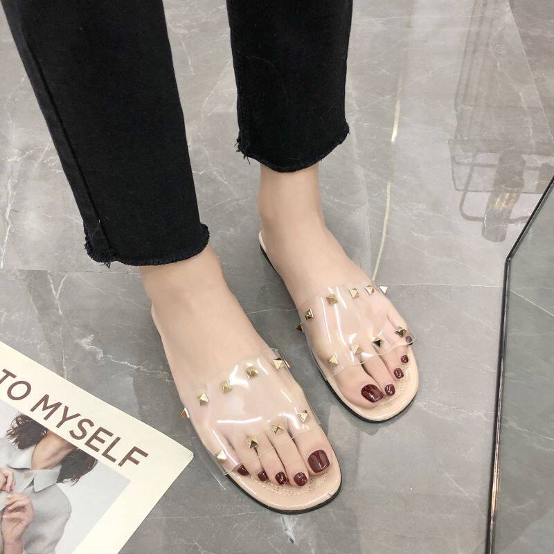 2020 summer new cool outdoor wearing rivet slippers can wet level outside the floor of the red social tide