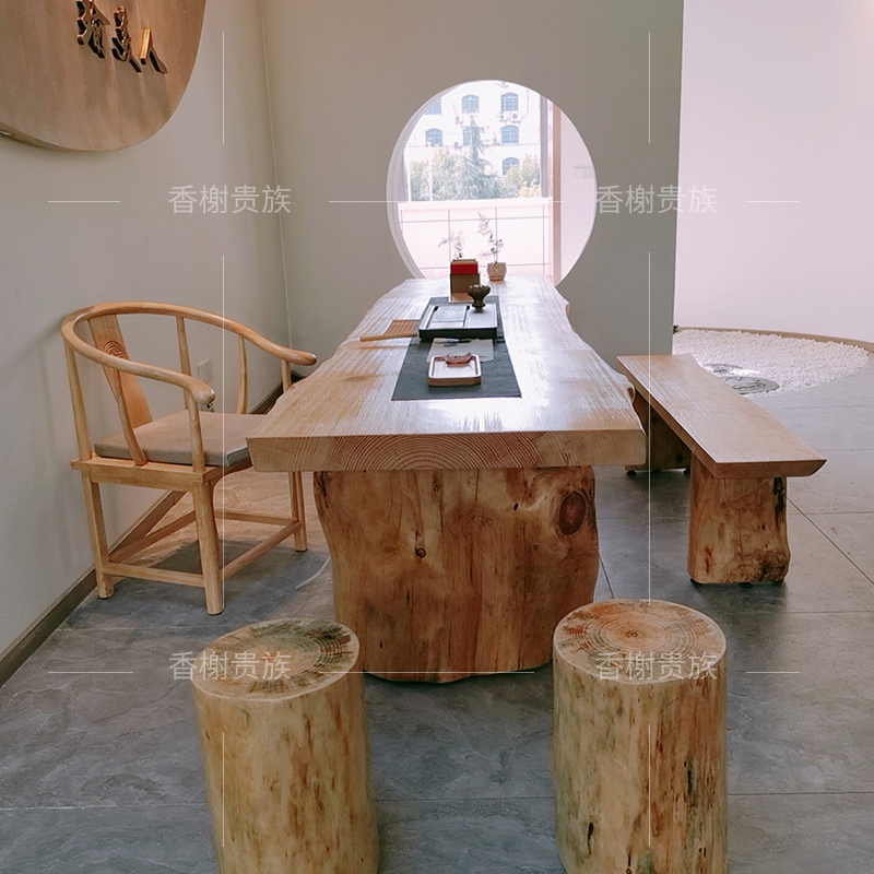 Large board tea table solid wood log pine wood tea room office casual tea table 3 m tea table tea table and chairs combination