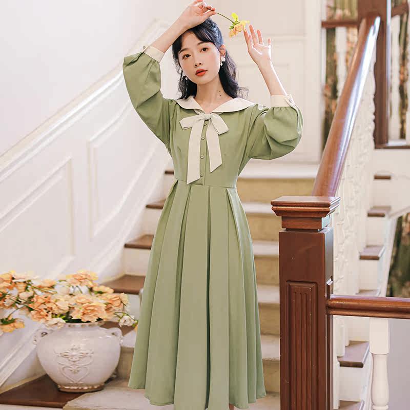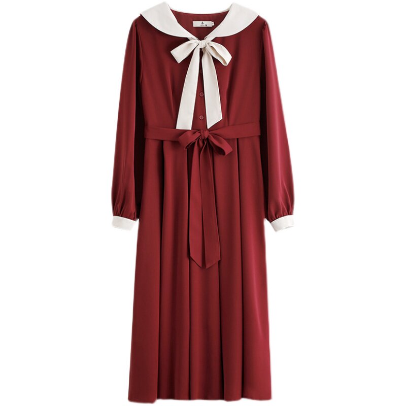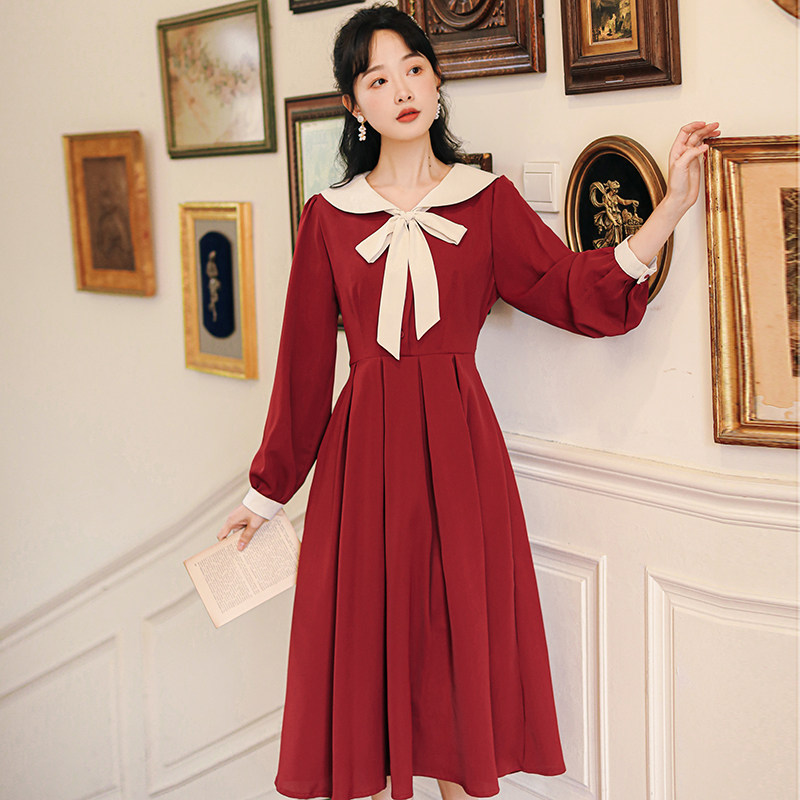Doll collar dress female spring and autumn 2021 new student sweet and cute Japanese long-sleeved French retro tea break skirt