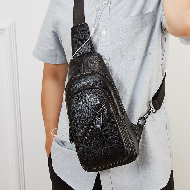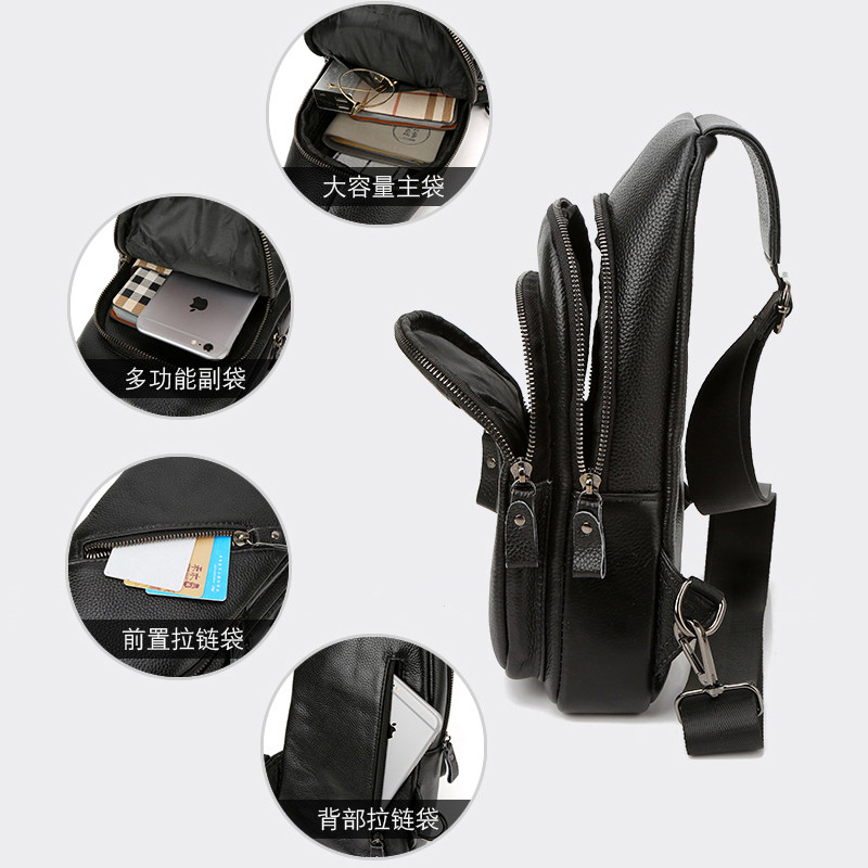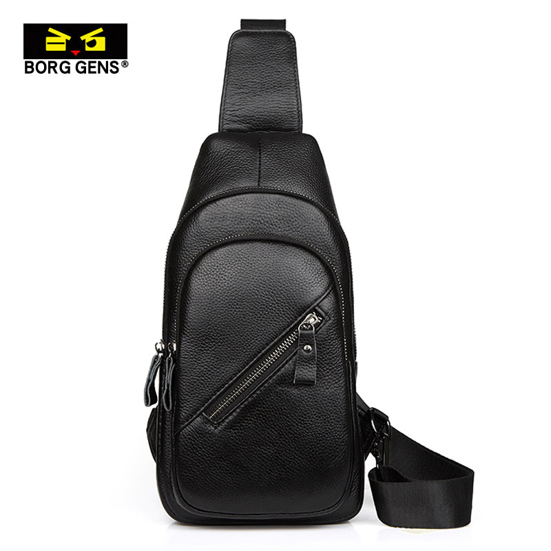 borggens messenger bag men's leather casual chest bag men's first layer cowhide small backpack chest shoulder bag tide brand