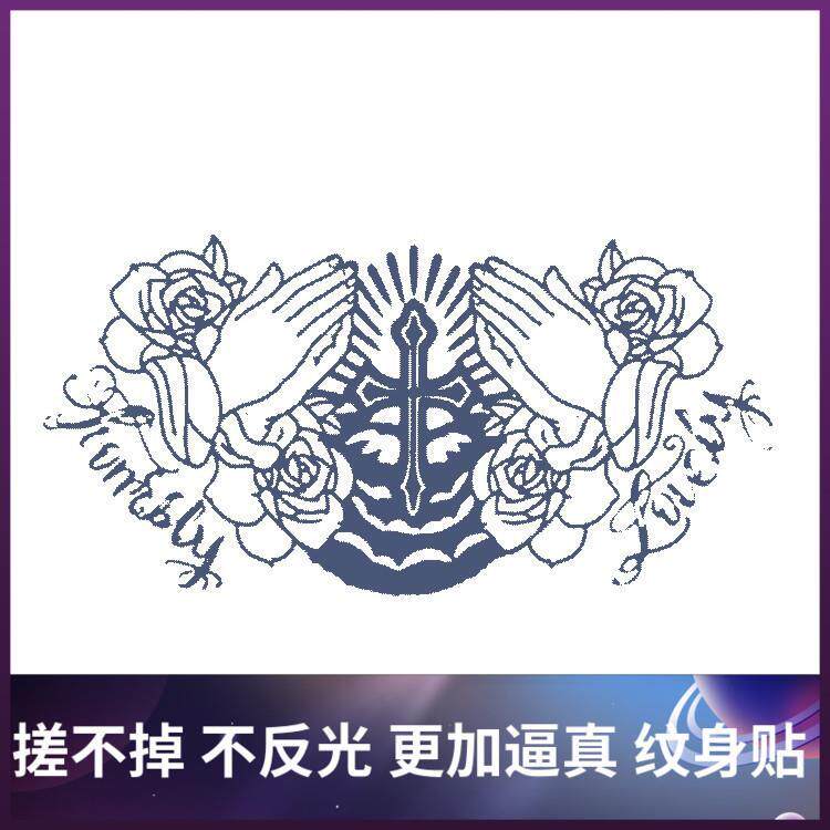 Juice men and women net red ins cross prayer neck tattoo stickers waterproof men and women lasting European and American black and white personality