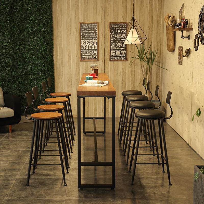 Solid wood bar table home balcony against the wall narrow table long long table milk tea shop bar high table and chair combination commercial