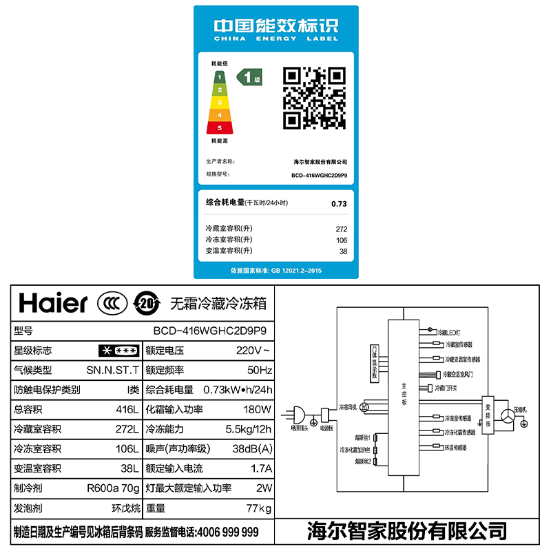 (new level of energy efficiency two doors) 416 liters BCD-253WDPDU1