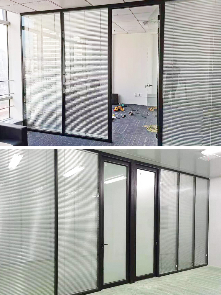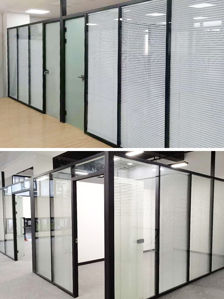 Office Glass High Partition Wall Aluminum Alloy Shutters Double Tempered Glass Screen Partition Wall Soundproof Wall Custom