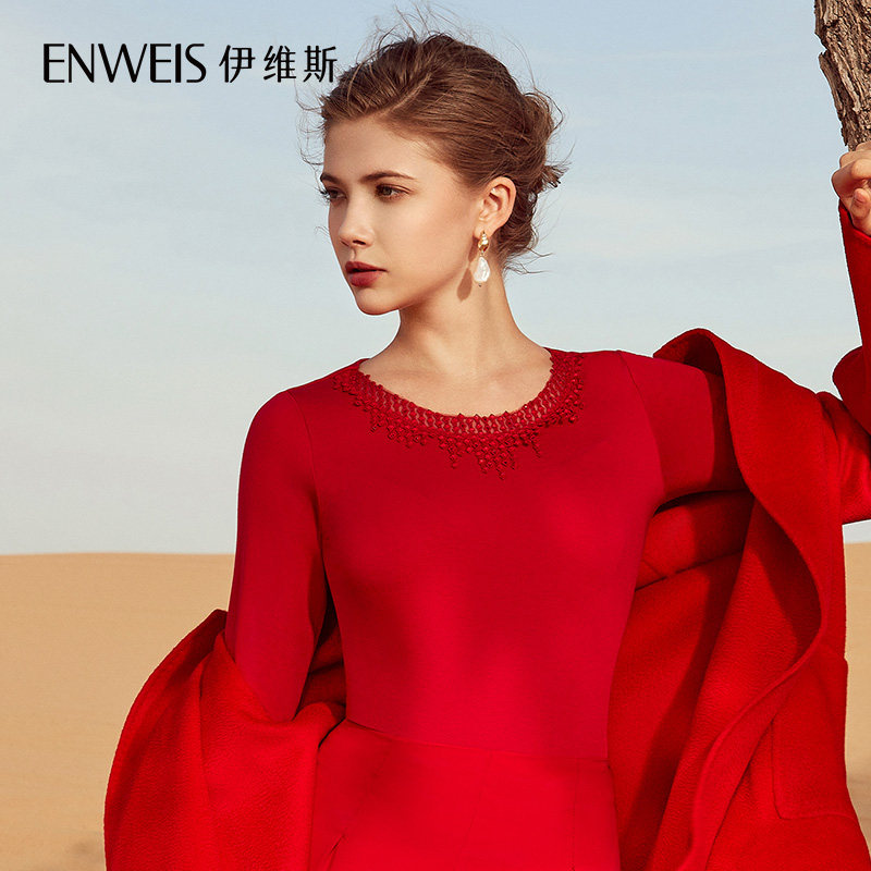 Evis (medium thickness) tops, women's velvet warm clothes, women's outer wear, bottoming warm clothes, underwear, natal red