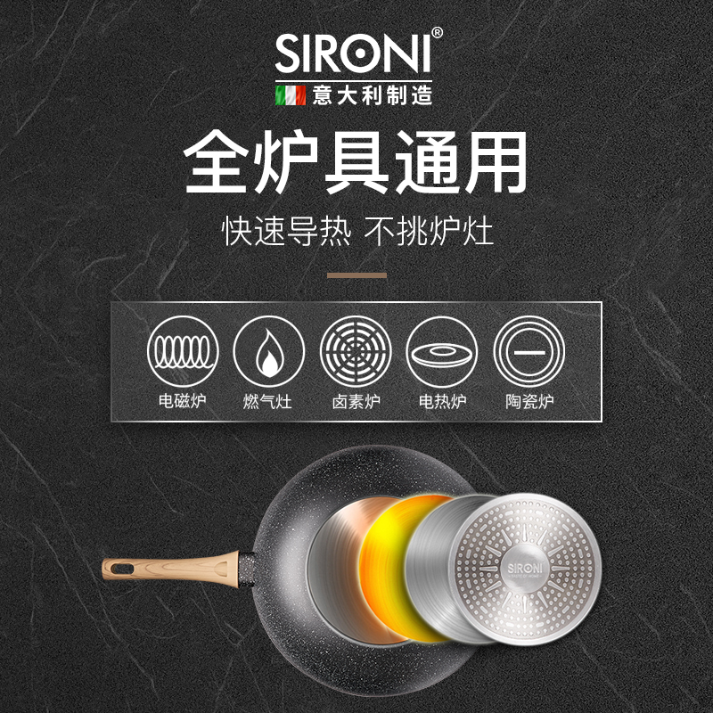 SIRONI Sironi gilded wok non-stick pan home wok gas stove induction cooker universal pot 32cm