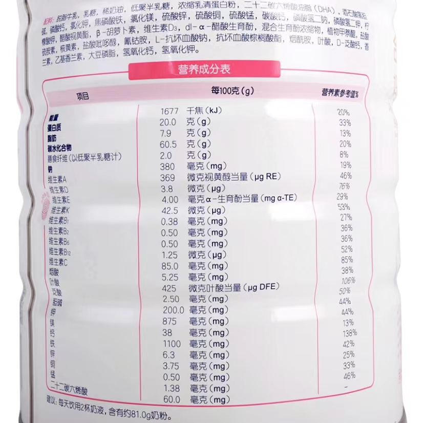 Co-production of pregnant women's milk powder without white granulated sugar Degreasing Preparation Mother Breastfeeding Calcium Iron Formula France Imports-Taobao