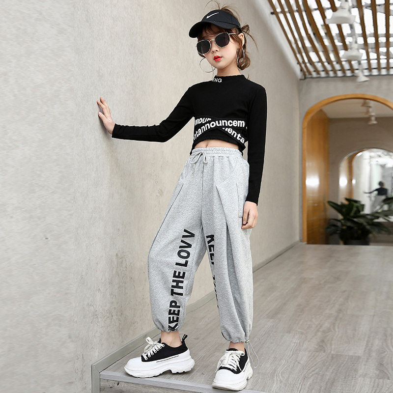 Girls' jazz dance hip-hop trend clothing children's hiphop navel dance practice suit little girl hip-hop costumes