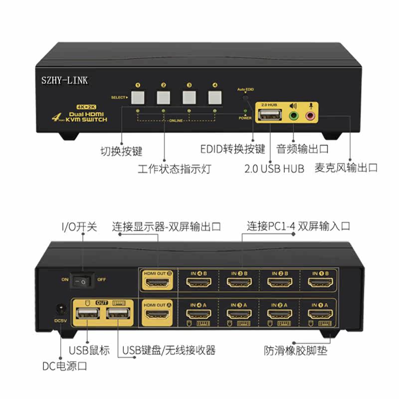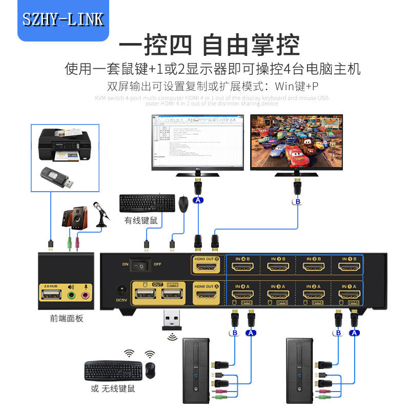 HDMI KVM Switch 8 in 2 out 4 in 2 out dual channel with audio HDMI Switch 8 in 2 out remote control