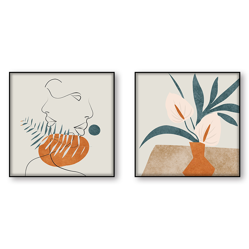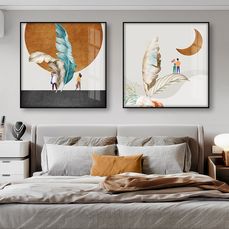 Orange Bedroom Decoration Painting Bedside Hanging Painting Postmodern Main Sleeper Room Background Wall Hanging Painting Modern Light Lavish Two Couplets