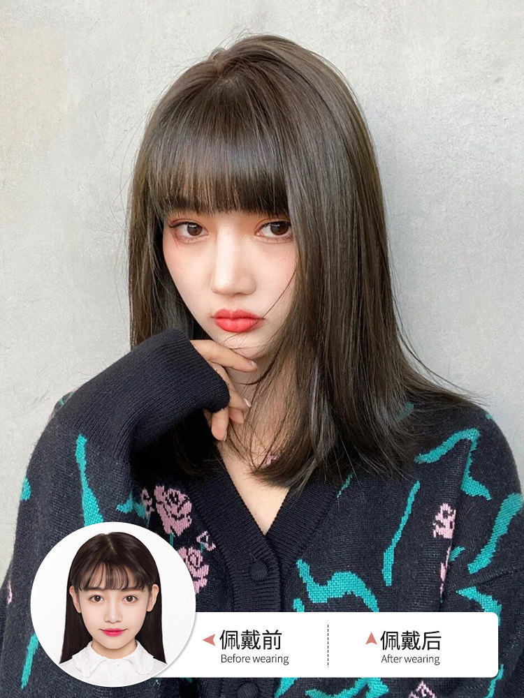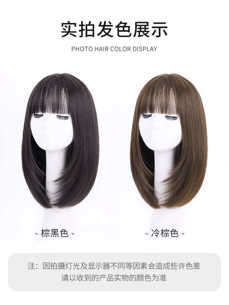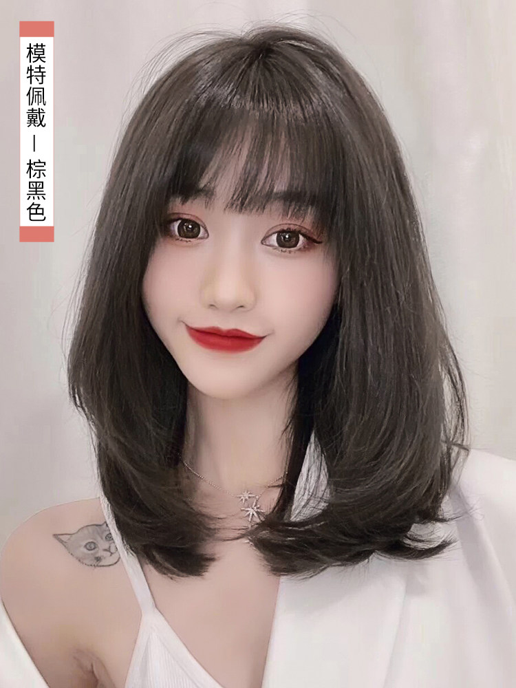 Wig women's long hair natural full headgear net red collarbone hair shape round face short hair simulation human hair wig set