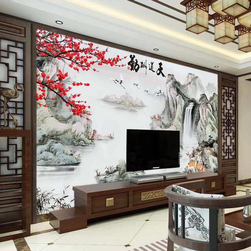 8d Chinese-style Tiandao rewards the diligent bamboo and wood fiber TV background integrated wall panel living room office wall panel 3D fast-loading
