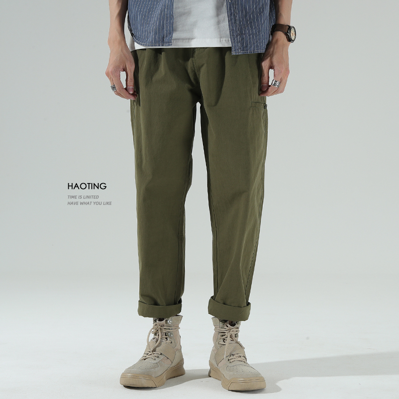 2022 autumn new loose straight workwear casual pants men's all-match 9 points pants boys small feet tapered pants