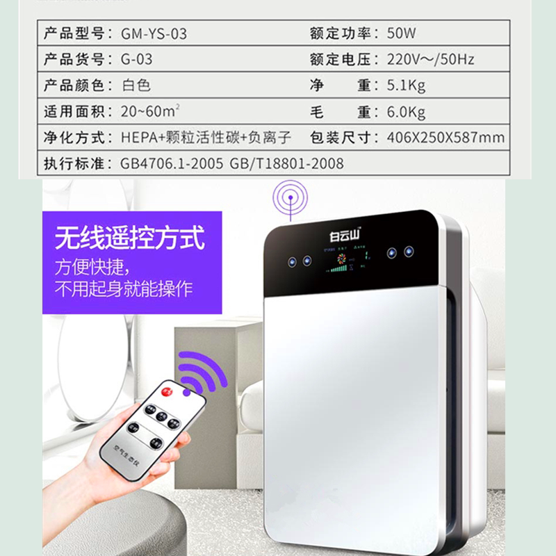 White Xinfei GM-YS-06A Purification 50M² Baiyun Mountain GM02 Button Type Purification 30M² Baiyun Mountain GM03 LCD Type Purification 50² Baiyun Mountain G16