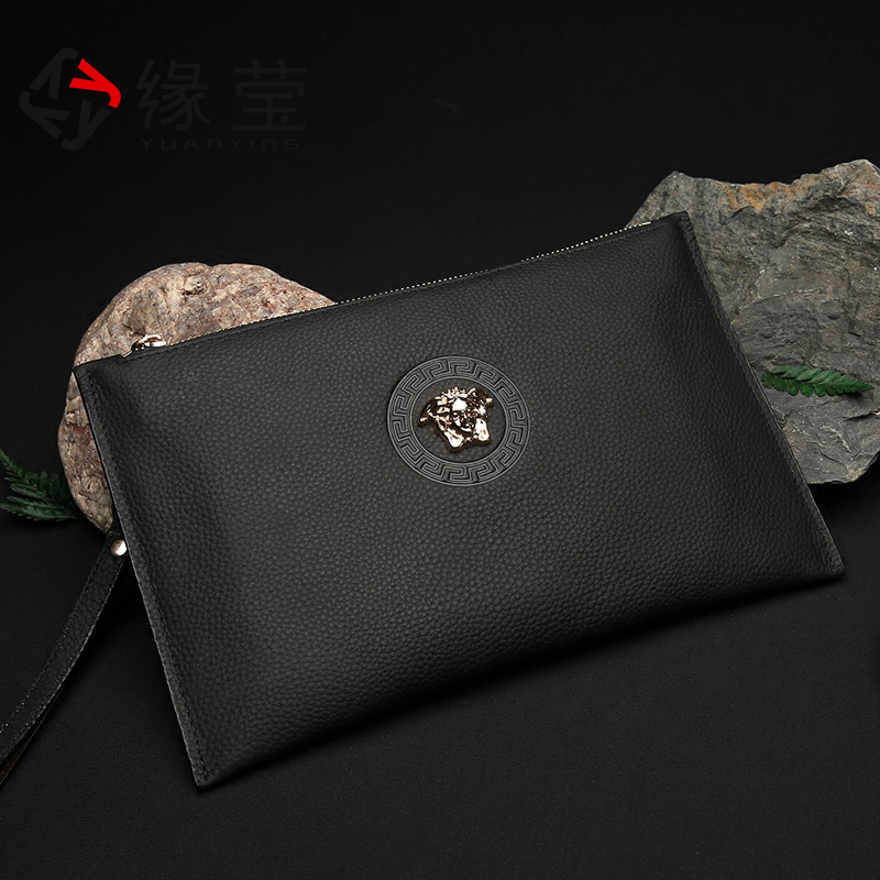 Light luxury leather handbag business casual hand grab bag clip bag first layer cowhide clutch bag tide brand envelope bag