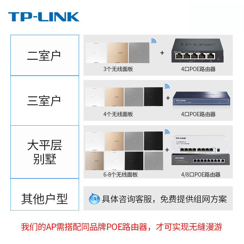 TP-LINK wireless AP panel Gigabit 86 wall-mounted router poe power supply Hotel villa home indoor network socket 1900M dual-band 5G whole house wifi coverage networking