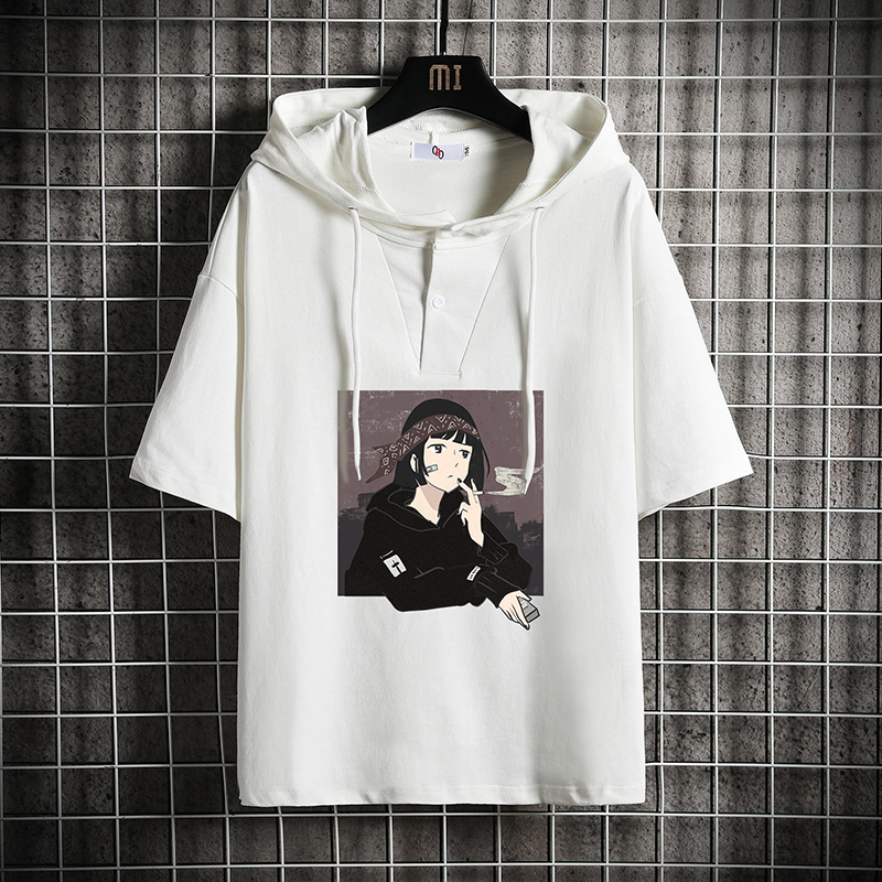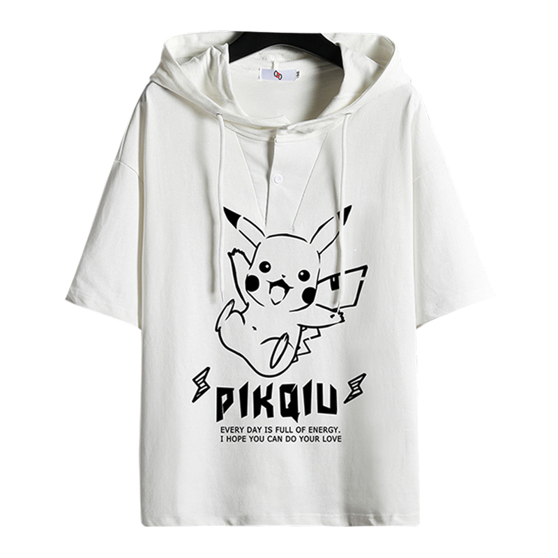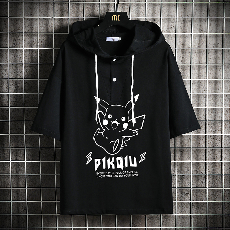 Hooded T-shirt men's spring and summer trend large size thin section short-sleeved sweater 2023 new Pikachu half-sleeved top clothes
