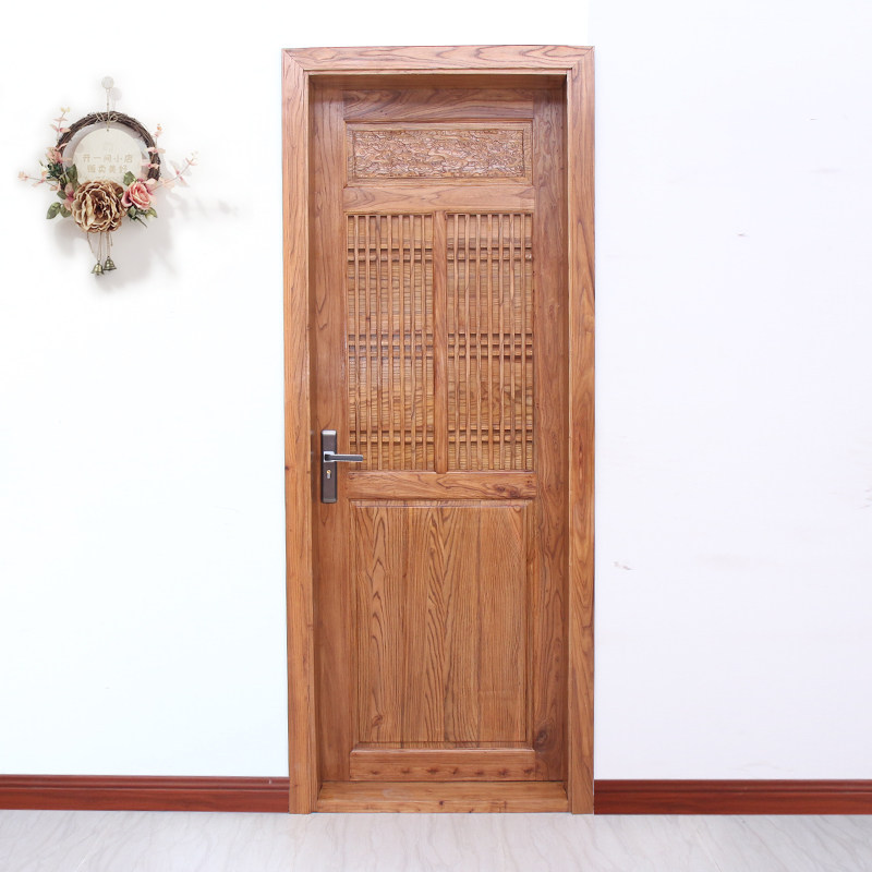 Homestay wooden door indoor bedroom door set soundproof door solid wood log color Chinese style retro whole house custom flat door