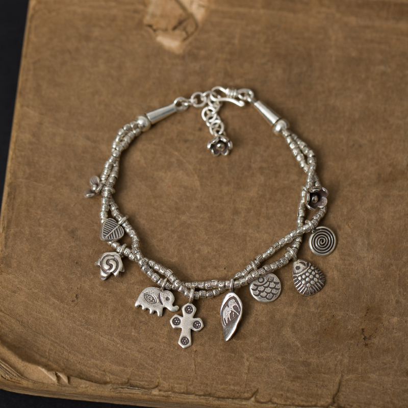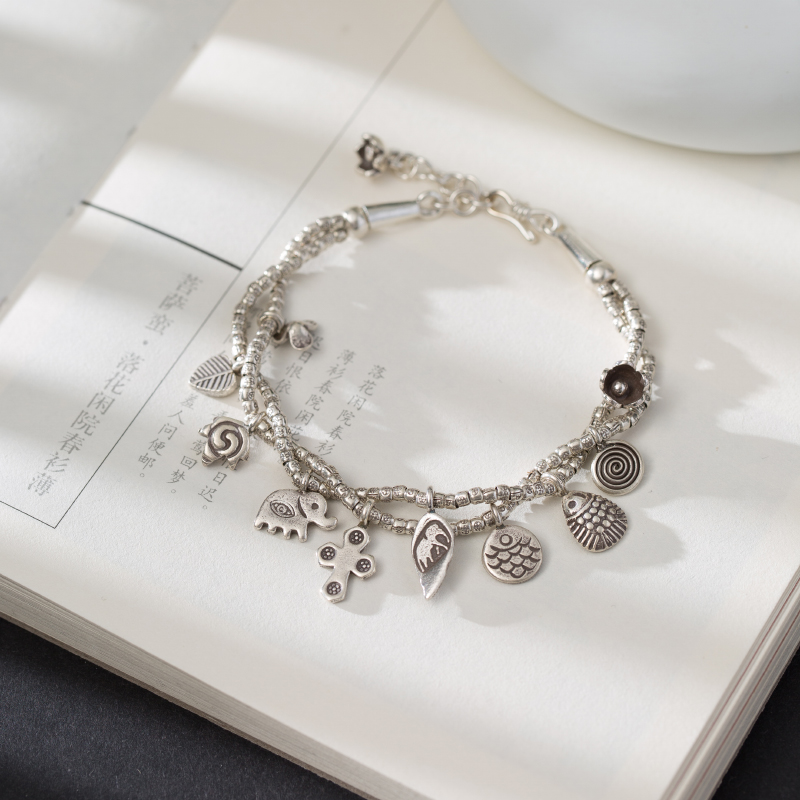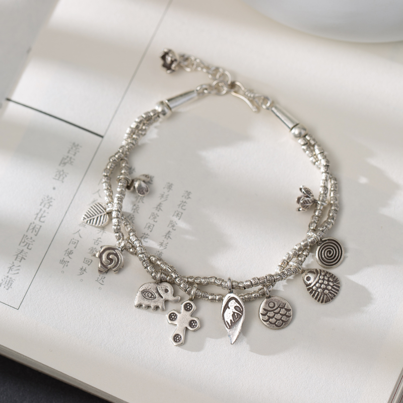 Star Debris Thai hand - made little fish Flower pure silver small pendant Pure silver retro bracelet woman