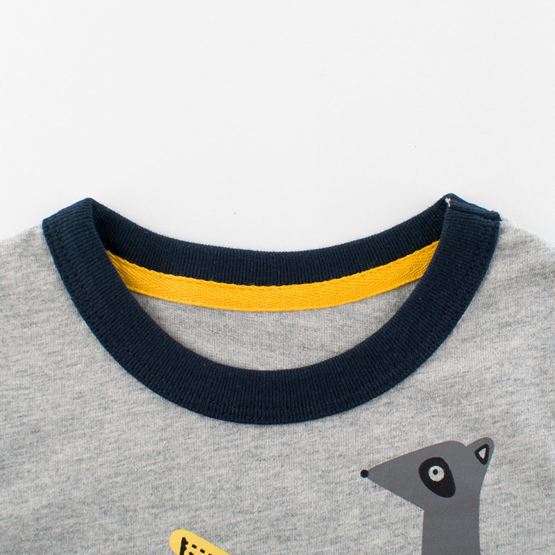 27kids Boys Brand Children's Clothing 2023 Spring Sleeve T-shirt Excavator Children Spring and Autumn Han Edition Pure Cotton Tide Brand