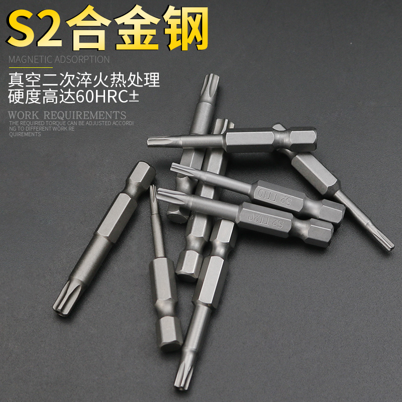 Plum Blossom Star S2 Material Pneumatic screwdriver with middle hole batch head floral internal pentagonal electric drill 5 corner star batch head TT8-TT40