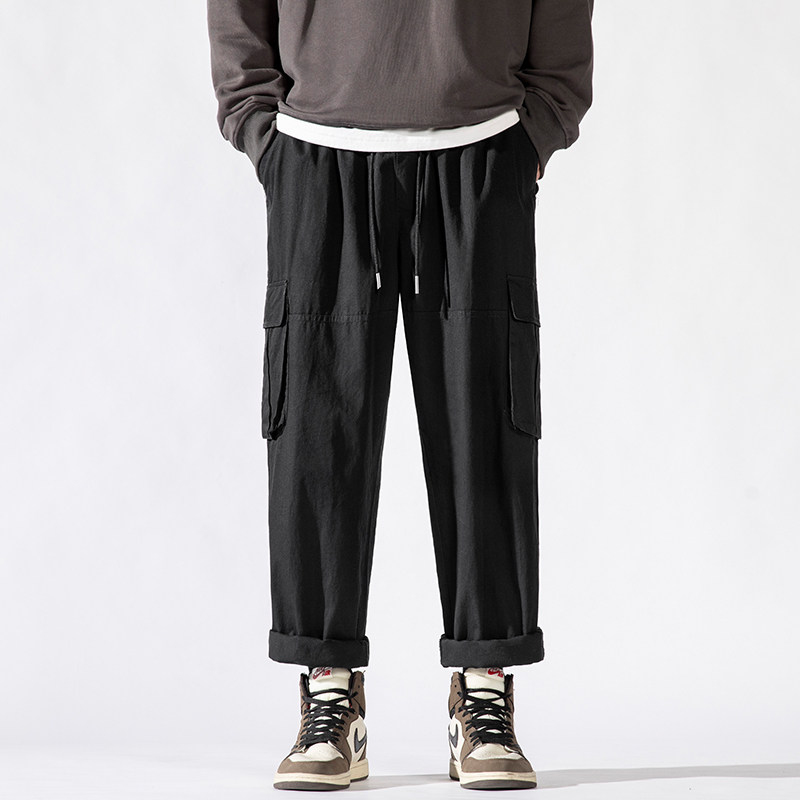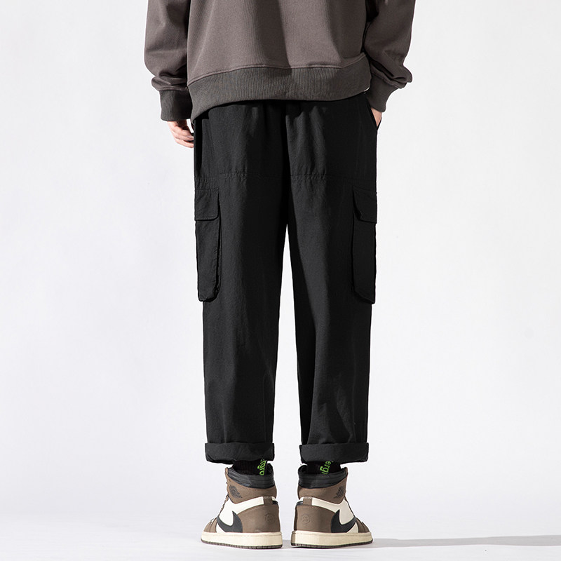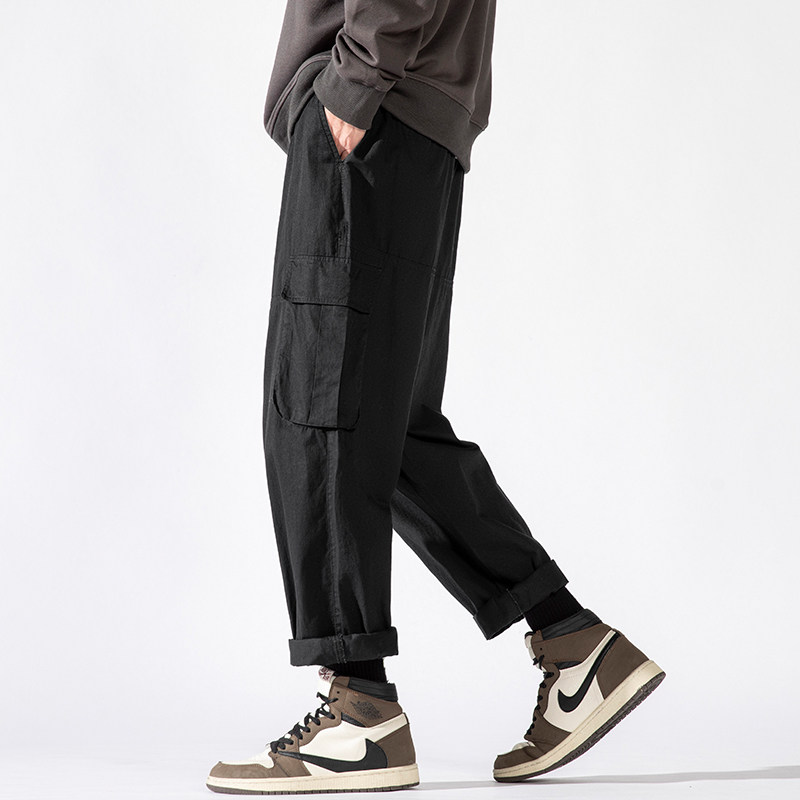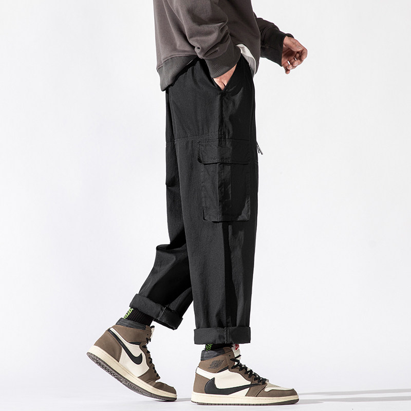 Men's work pants straight loose ins Hong Kong fashion brand spring and autumn wide-leg all-match drawstring large size casual pants