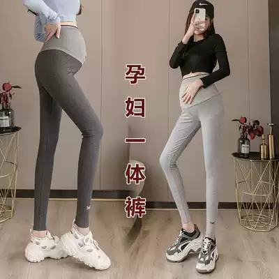 Pregnant women's inner pants, small, high waist, midriff, spring and autumn, black, outer wear, fashion, trendy mom, pregnancy yoga nine-point pants
