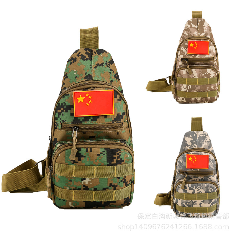1 large khaki chest bag (28*20*14) 1 large black chest bag (28*20*14) 1 small camouflage chest bag (28*17*8)
