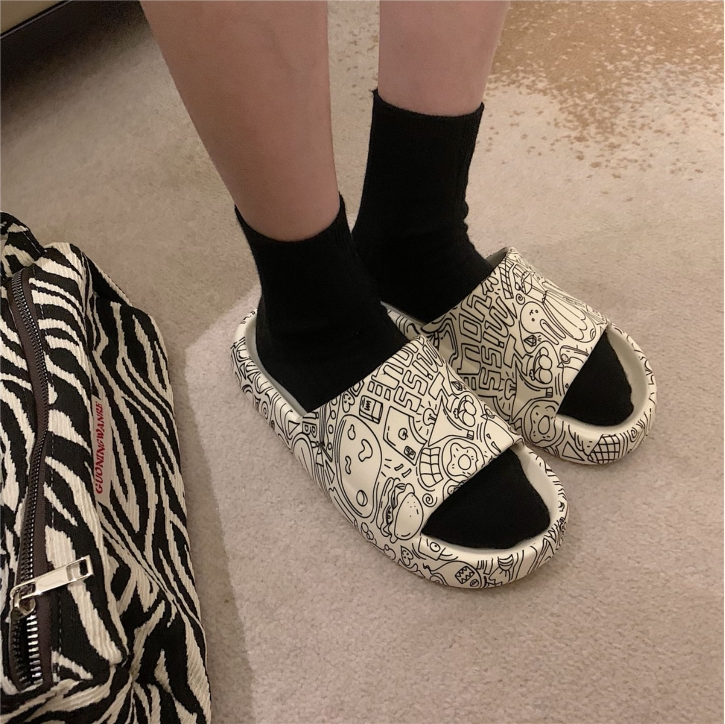 Japan BM Melville new sandals and slippers women wear non-slip thick graffiti beach shoes for men and women