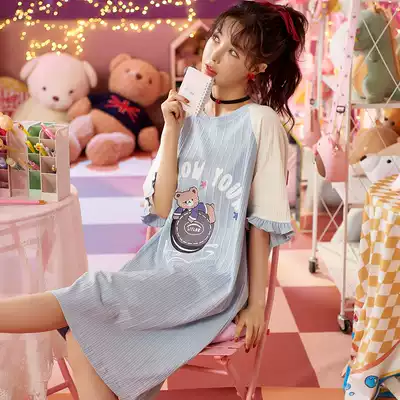 Yu Zhaolin pajamas women's summer cotton short-sleeved nightskirts women's summer cute thin Korean dress Spring Autumn