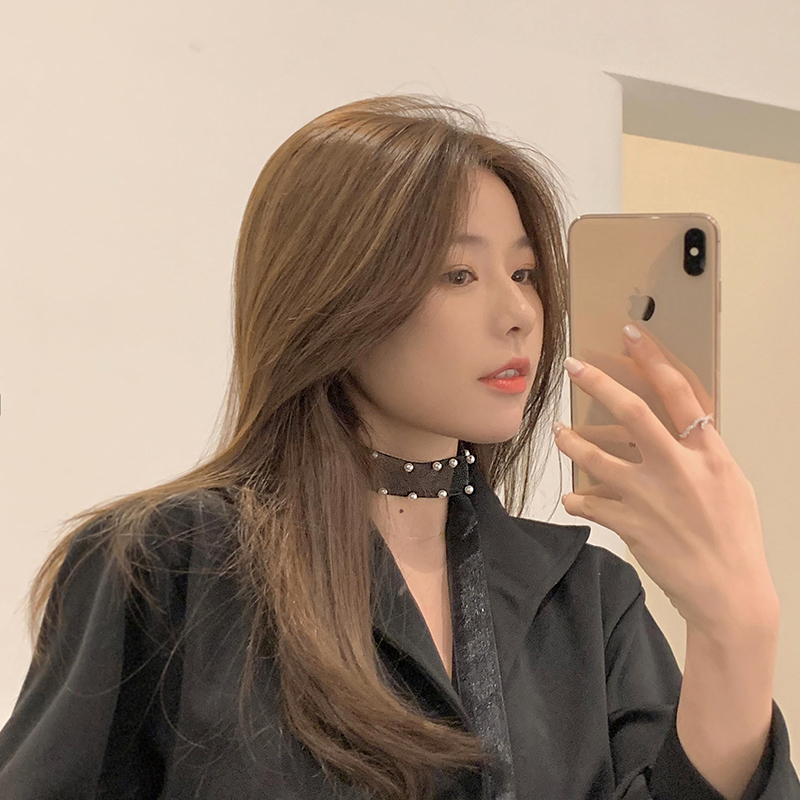 Hairband women's tied hair wash face French pearl mesh headdress 2022 new ribbon back head neck chain cold wind