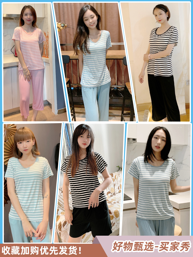 Powder White Strips-With Chest Cushion (Short Sleeves Seven Pants Suit) Green White Strips-With Chest Cushion (Short Sleeves Seven Pants Suit) Purple White Strips-With Chest Cushion (Short Sleeves Seven-Pants Suit) Grey White Strips-With Chest Cushion (Short