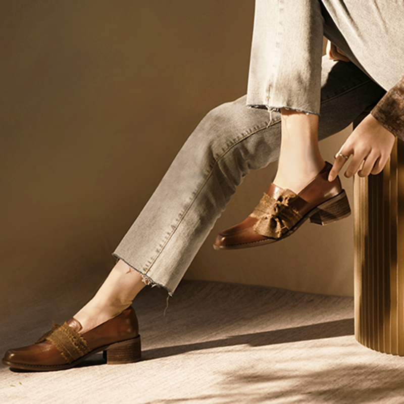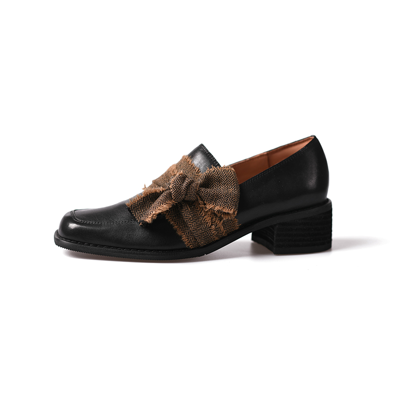 Xiao Fuzi square head shoes female Yinglun Wind small leather shoes Spring paragraph square with butterfly knot ancient one foot pedal coarse and lefu