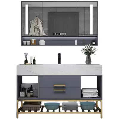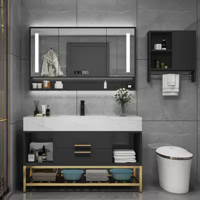 Sanitary Ware light luxury solid wood rock board smart bathroom cabinet combination modern one basin cosmetic room wash hand wash basin cabinet