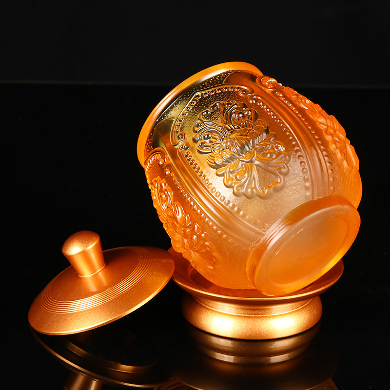 Glazed for the Buddha's cup Home Property Guanyin Guanyin Treasure Lotus Buddha Ex Buddha Church Relief Lotus Holy Water Cup Buddha swing piece