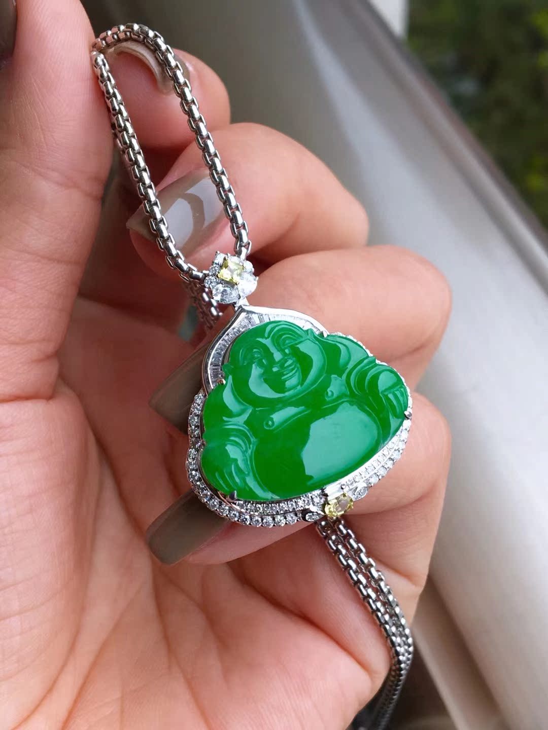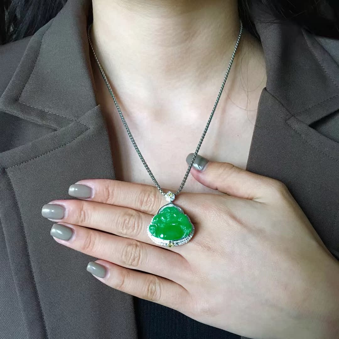 Zhengyang green full Buddha male pendant cudred with full bodied and fine color uniform
