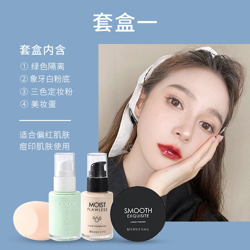 France Lancanine powder bottom liquid isolation frosted powder Flawless Control Oil Persistent makeup Three-in-one Invisible Hair Color Makeup Suit