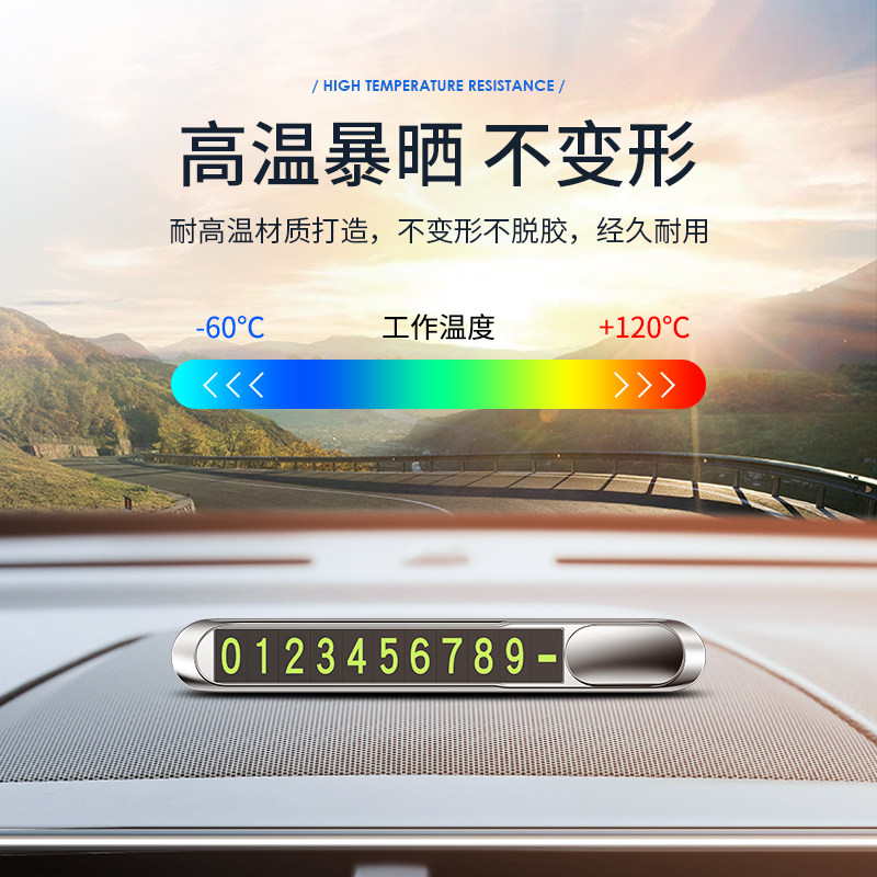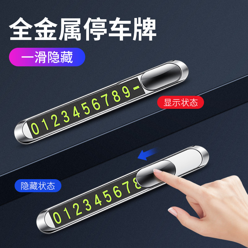 Car mobile phone number plate metal temporary stop plate anti-slip luminous phone card interior supplies ornaments
