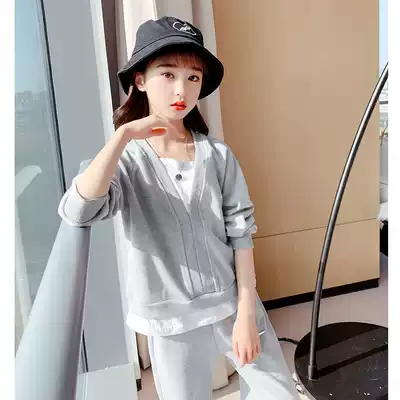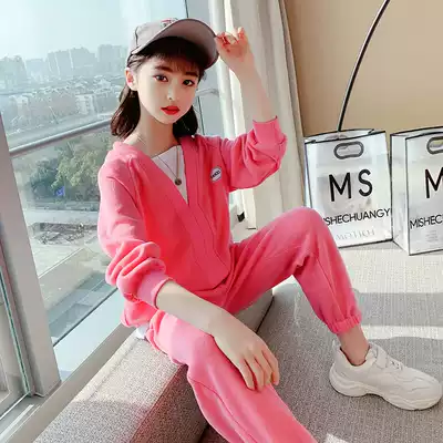 Girls ' sports suit 2021 new casual spring clothes girls middle school children's Western school loose two-piece cotton clothes tide