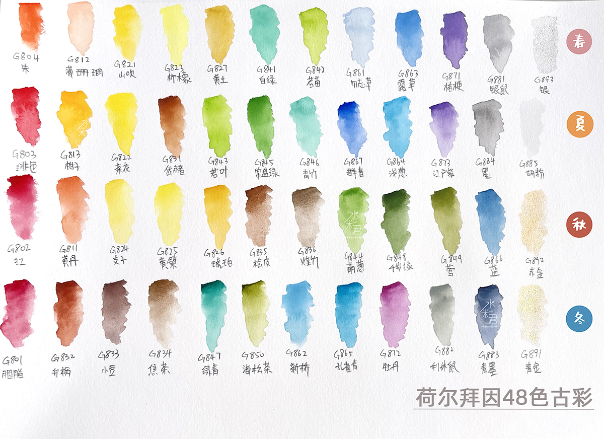 Holbein opaque watercolor New Paleo Four Seasons Series Set 48 colors Watercolor split watercolor paint