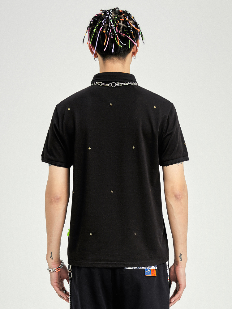 Mark Huafei Polo shirt men's summer new full print small embroidery business casual lapel short-sleeved top